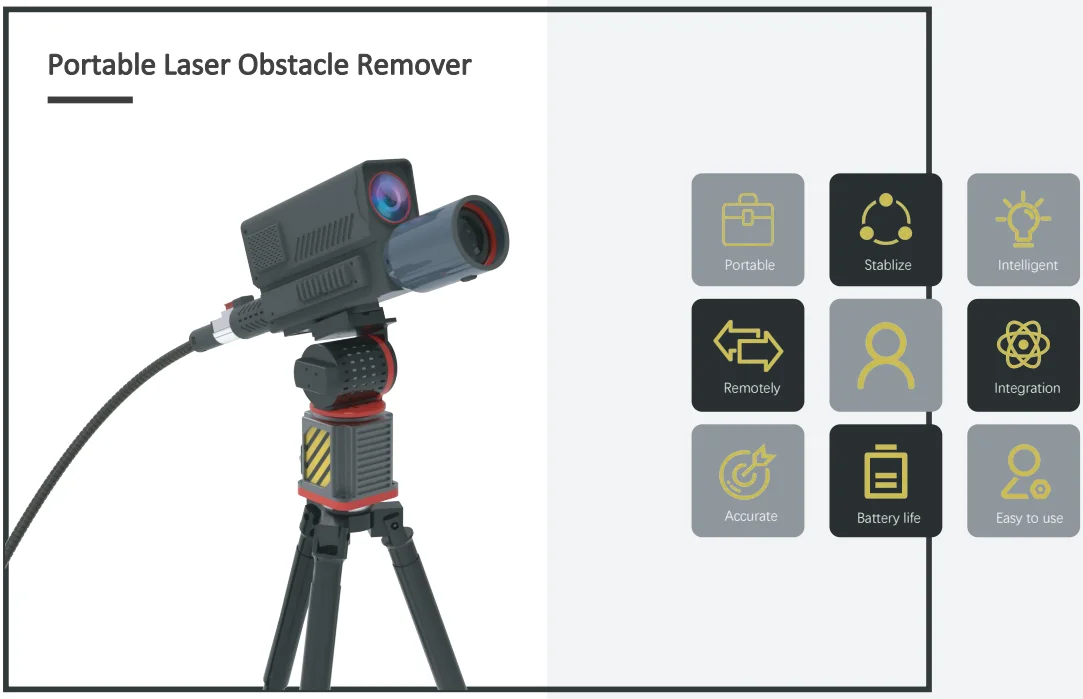 The principle of laser obstacle remover is to use the laser beam to irradiate the foreign object to burn and vaporize it, so that the foreign object can be separated from the power grid.it can perform remote obstacle clearing, which simplifies the obstacle clearing process and improves the operator's work safety.
