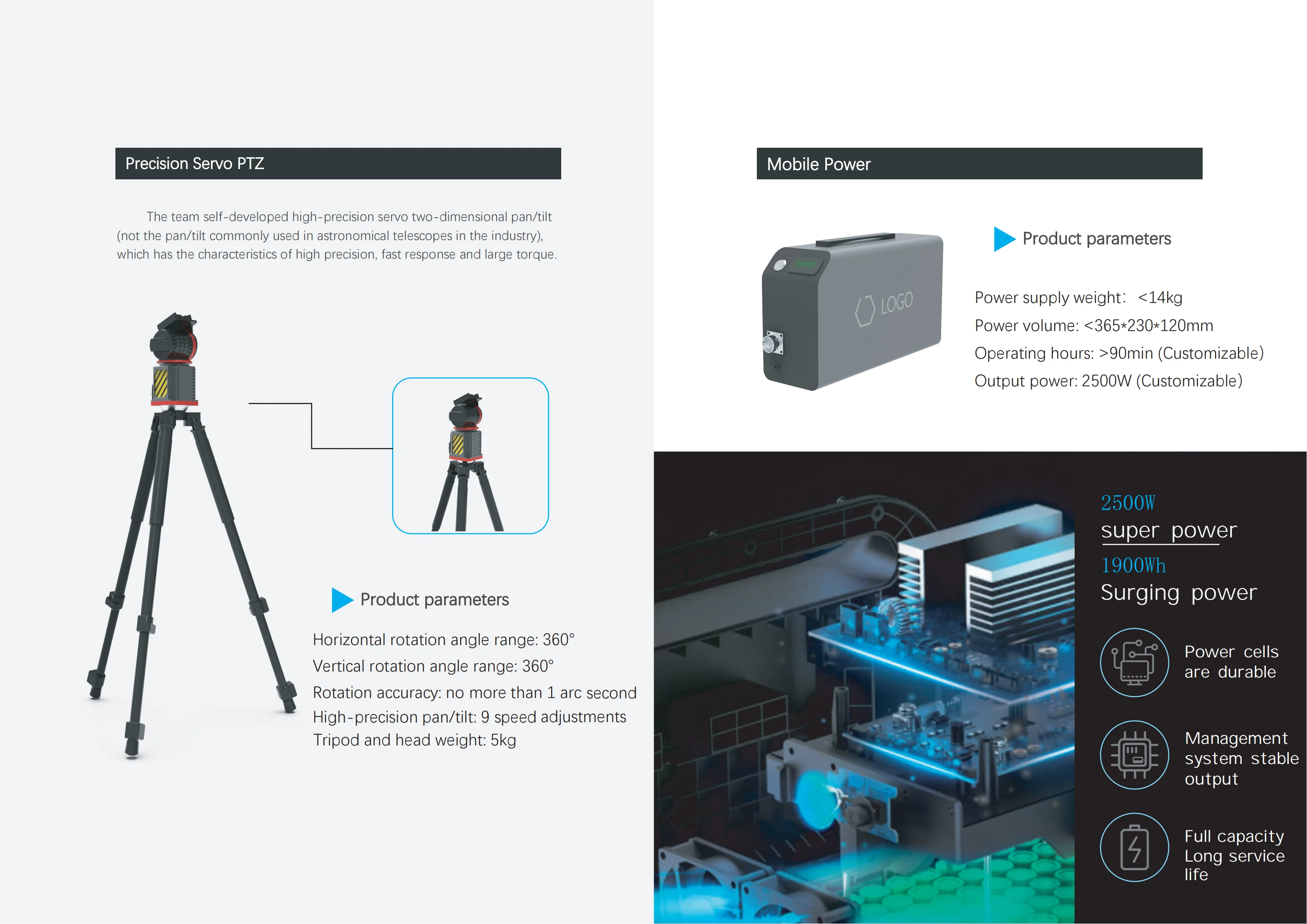 4. Laser light output direction is controlled by precision electronic Tripod head to realize laser precise control ;